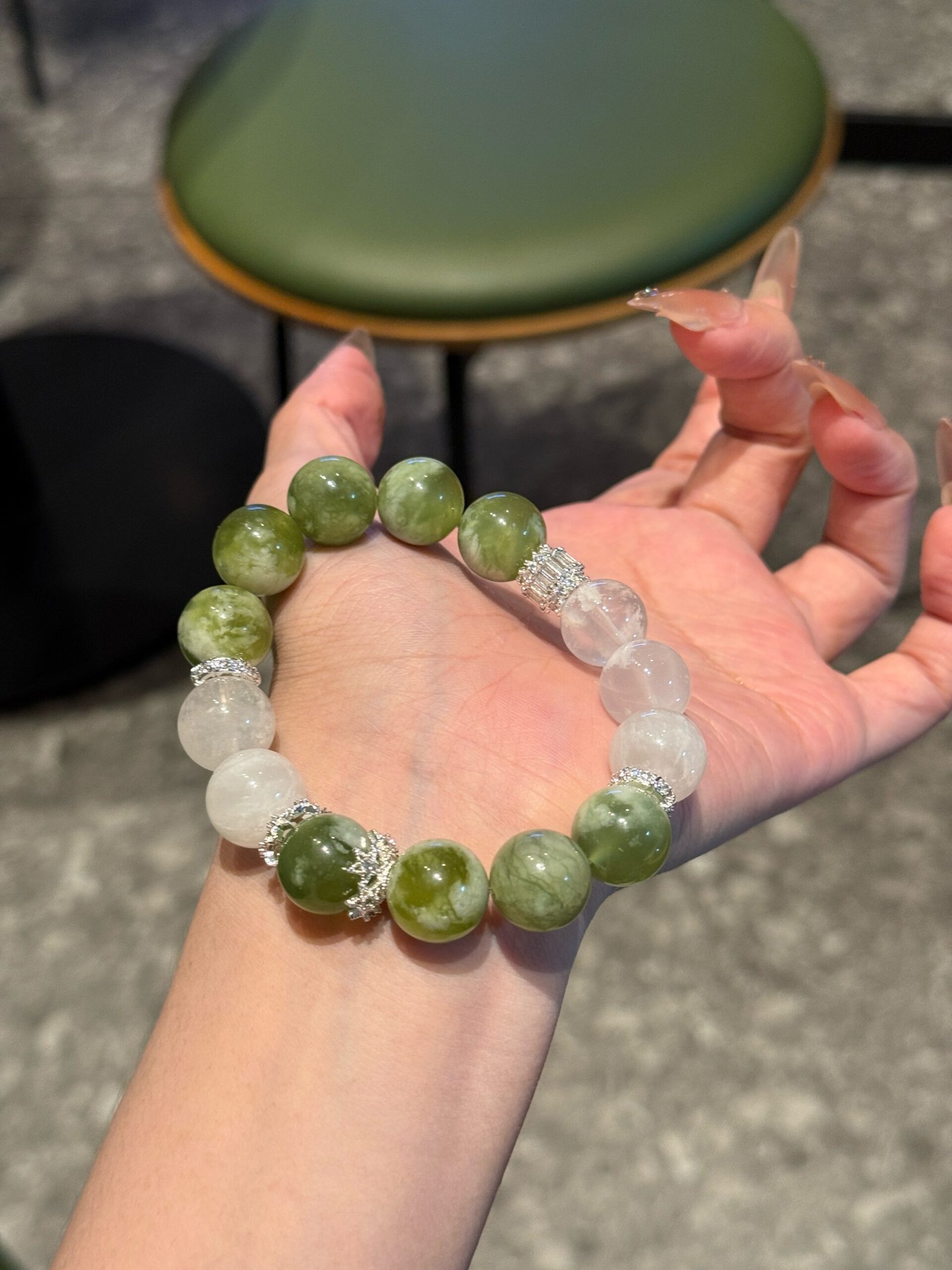 Gemstones Used | Xiuyan Jade (Green Grape Milk Jade) · Snow Quartz