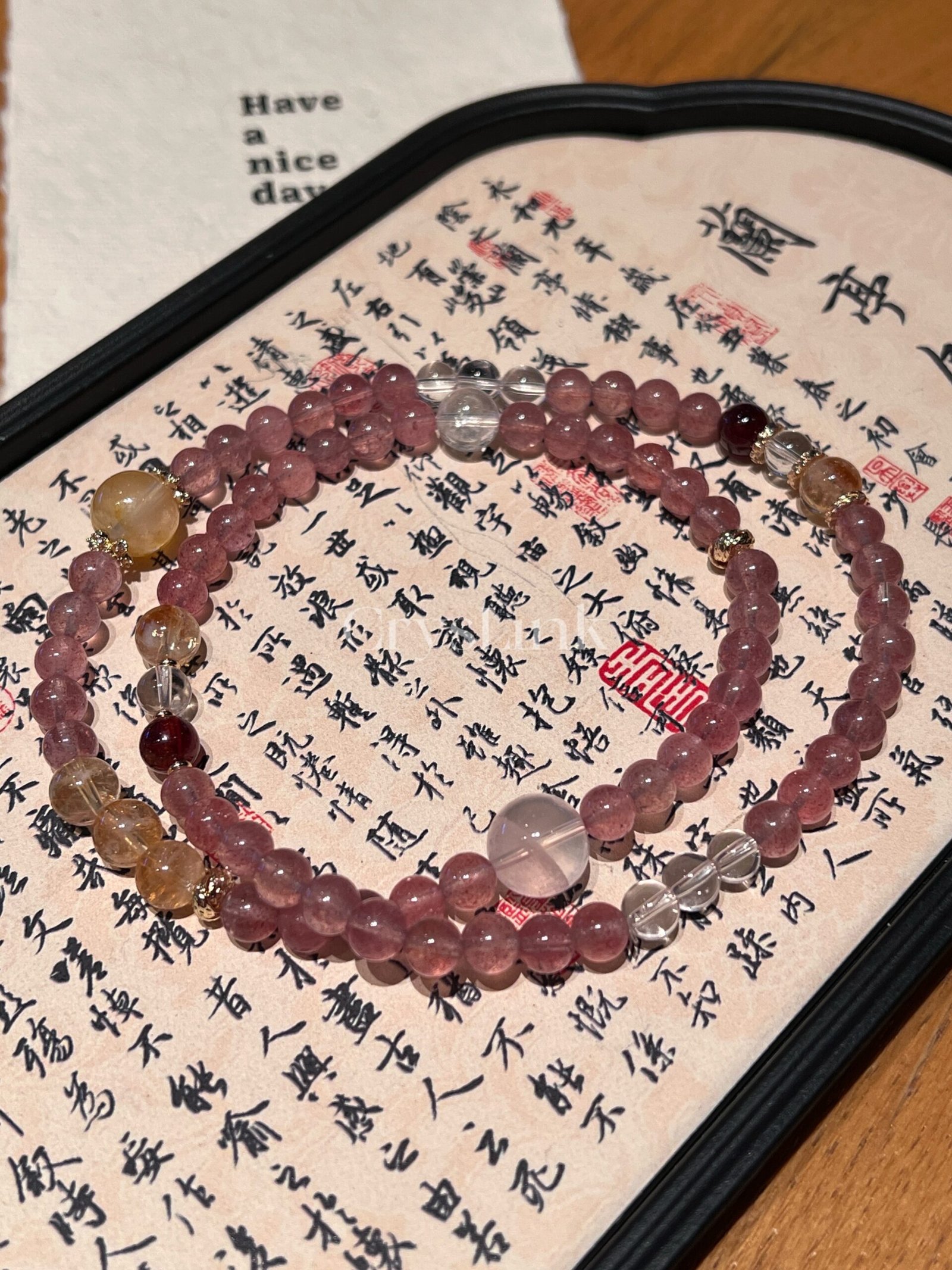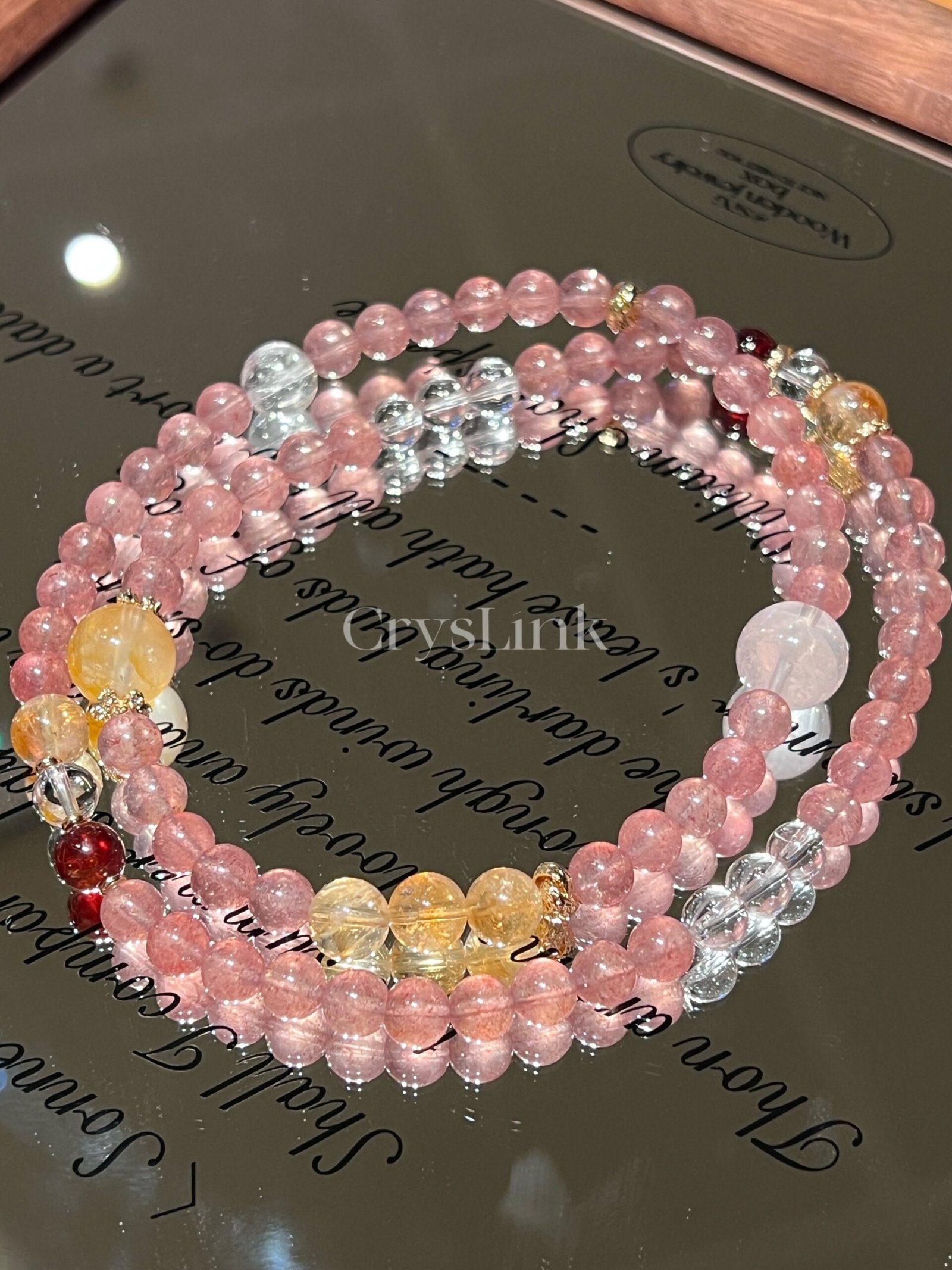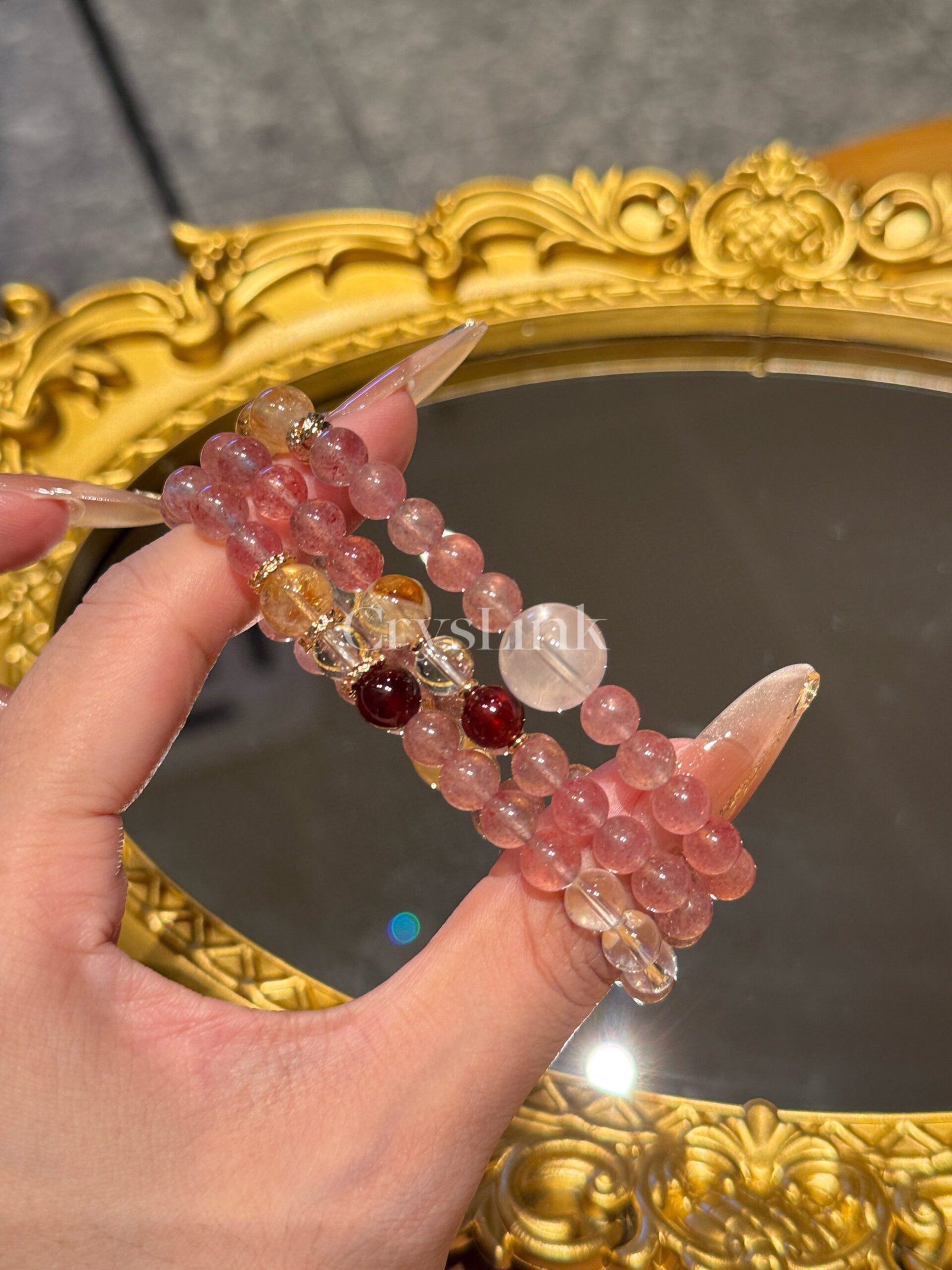 Stones Used | Strawberry Quartz · Rose Quartz · Golden Rutilated Quartz